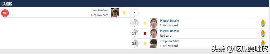 1986年世界杯博西奥。 乌拉圭绝对是本届世界杯最“红”的球队。 小组赛第二轮对阵丹麦的比赛中,博西奥在6分钟内连续吃牌后被罚下场。